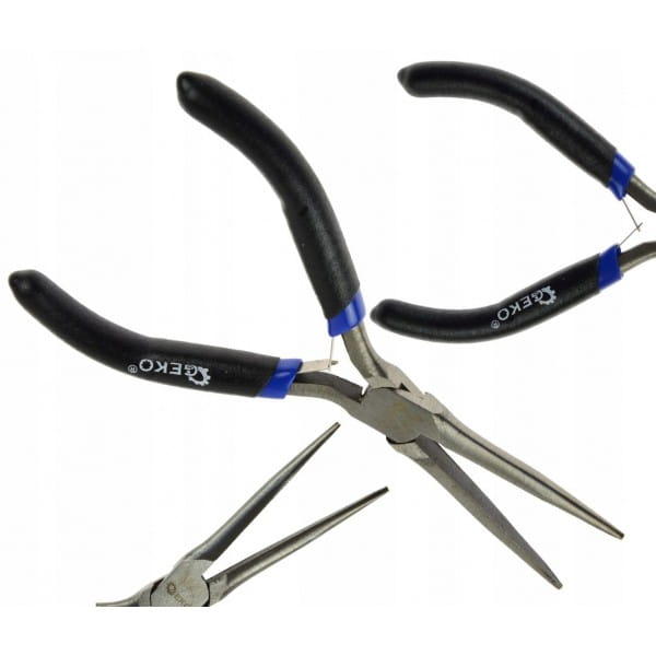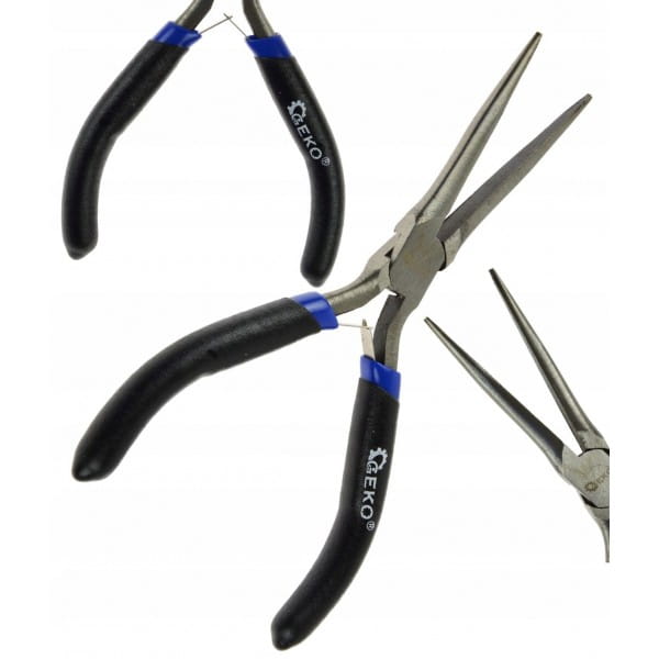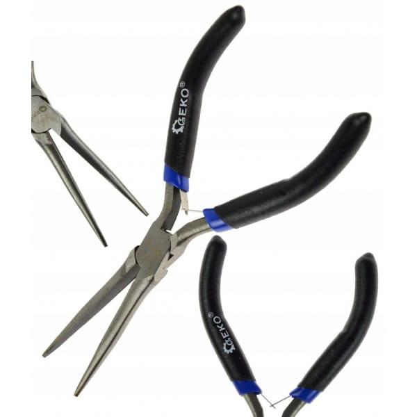 Szczypce precyzyjne wydłużone płaskie GEKO, wykonane ze stali, długość 145mm.
