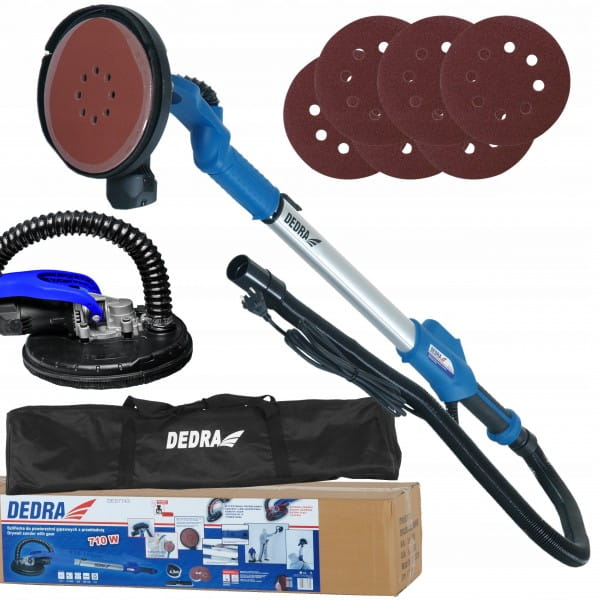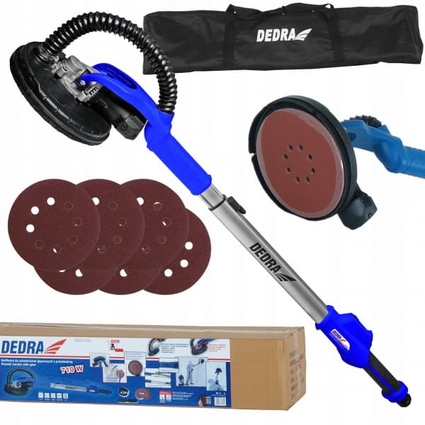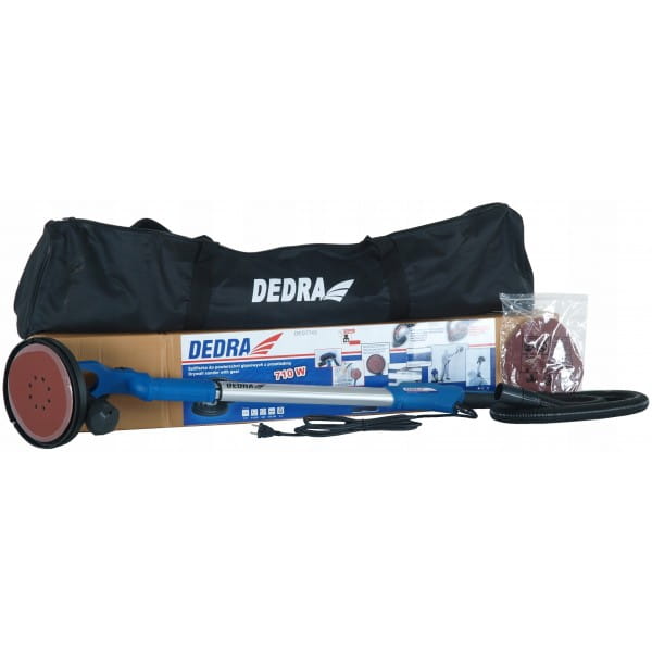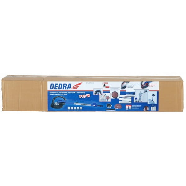 Szlifierka DED7743 jest produktem zaprojektowanym do szlifowania ścian i sufitów z płyt gipsowo-kartonowych pokrytych gładzią gipsową. W konstrukcji szlifierki zastosowano system odpylający. Podłączenie szlifierki do odkurzacza typu przemysłowego pozwala znacznie ograniczyć rozprzestrzenienie się urobku w czasie pracy.
