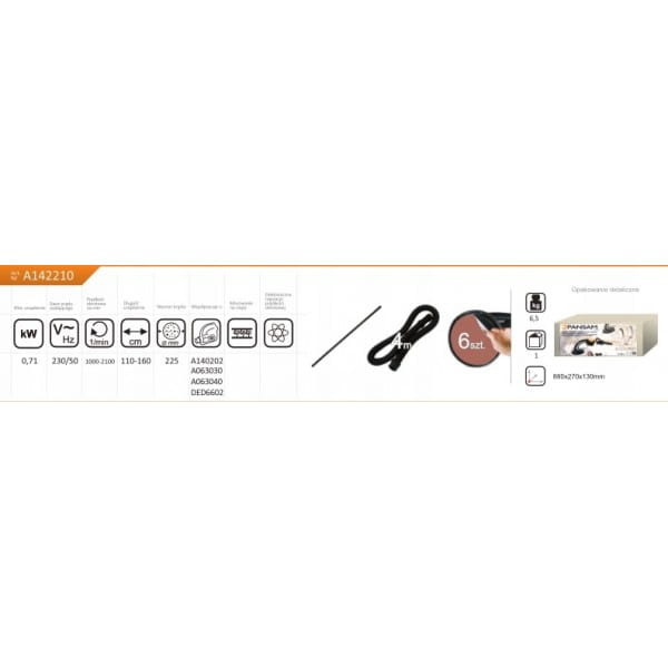 Dane techniczne szlifierki wysięgnikowej PANSAM A142210: