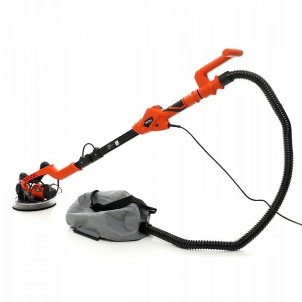 Aluminiowy trzonek urządzenia można złożyć pośrodku, dzięki czemu urządzenie jest niezwykle łatwe do przechowywania. Poza urządzeniem w zestawie znajduje się także sześć arkuszy papieru ściernego przeznaczonego do szlifierki. Bez pyłu i szpachlówki! Urządzenie jest wyposażone w wąż, który można zamocować w odkurzaczu – idealne rozwiązanie, aby utrzymać miejsce pracy w czystości!