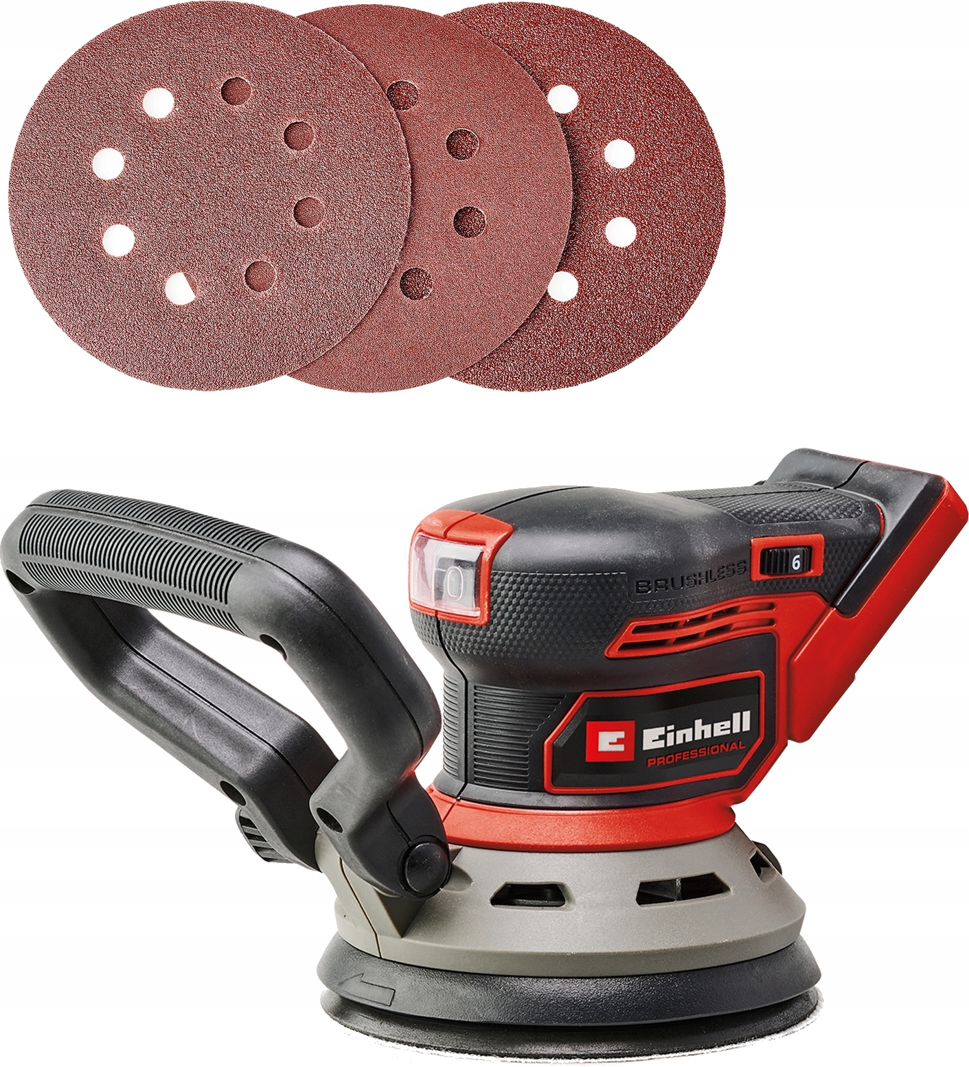 Einhell Professional akumulatorowa szlifierka mimośrodowa TP-RS 18/32 Li BL-Solo to niezawodne urządzenie przeznaczone do intensywnego użytku w warsztacie. Dzięki zasadzie mimośrodowej zapewnia bardzo drobne wykończenie powierzchni przy jednocześnie wysokiej wydajności szlifowania i dużym stopniu usuwania materiału. Moc szlifierki można dostosować do materiału i zadania za pomocą elektronicznej regulacji prędkości obrotowej.