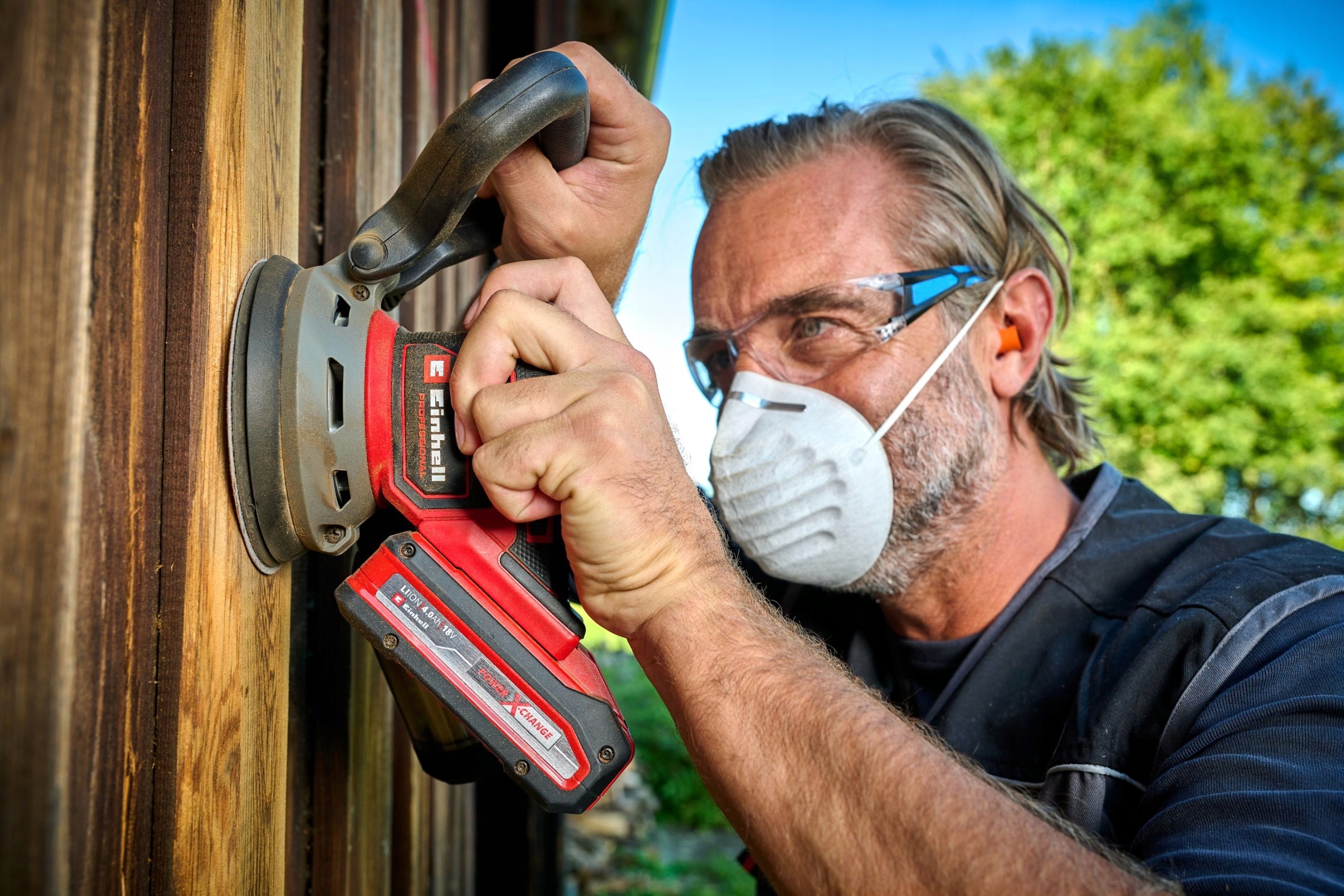 Funkcja mimośrodowa zapewnia nie tylko wyjątkowo wysokie usuwanie materiału, ale także doskonałe efekty szlifowania. Okrągły talerz szlifierski obraca się w ruchu okrężnym i jednocześnie oscyluje w zakresie 3,2 mm, osiągając do 24 000 oscylacji na minutę. Dzięki temu akumulatorowa szlifierka mimośrodowa Einhell Professional TP-RS 18/32 Li BL jest niezbędnym narzędziem dla każdego profesjonalnego rzemieślnika.