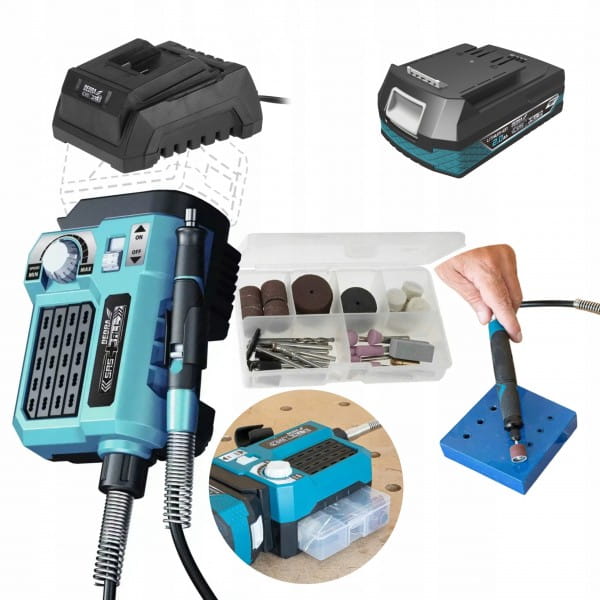To świetne multinarzędzie do prac precyzyjnych - dzięki zastosowaniu odpowiednich końcówek roboczych, możemy ją wykorzystać zależnie od potrzeb do wiercenia, szlifowania, polerowania czy cięcia. W zestawie znajdziemy 40 szt. akcesoriów, a dzięki uchwytowi na akcesoria zamontowanemu w urządzeniu, będziemy mieć je zawsze pod ręką.