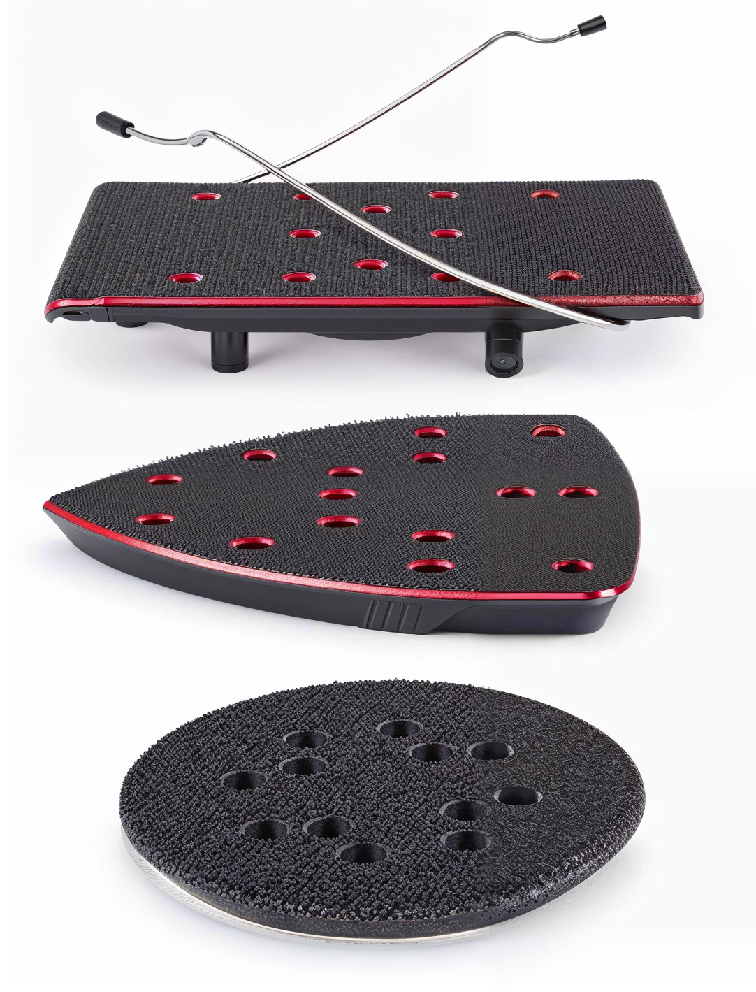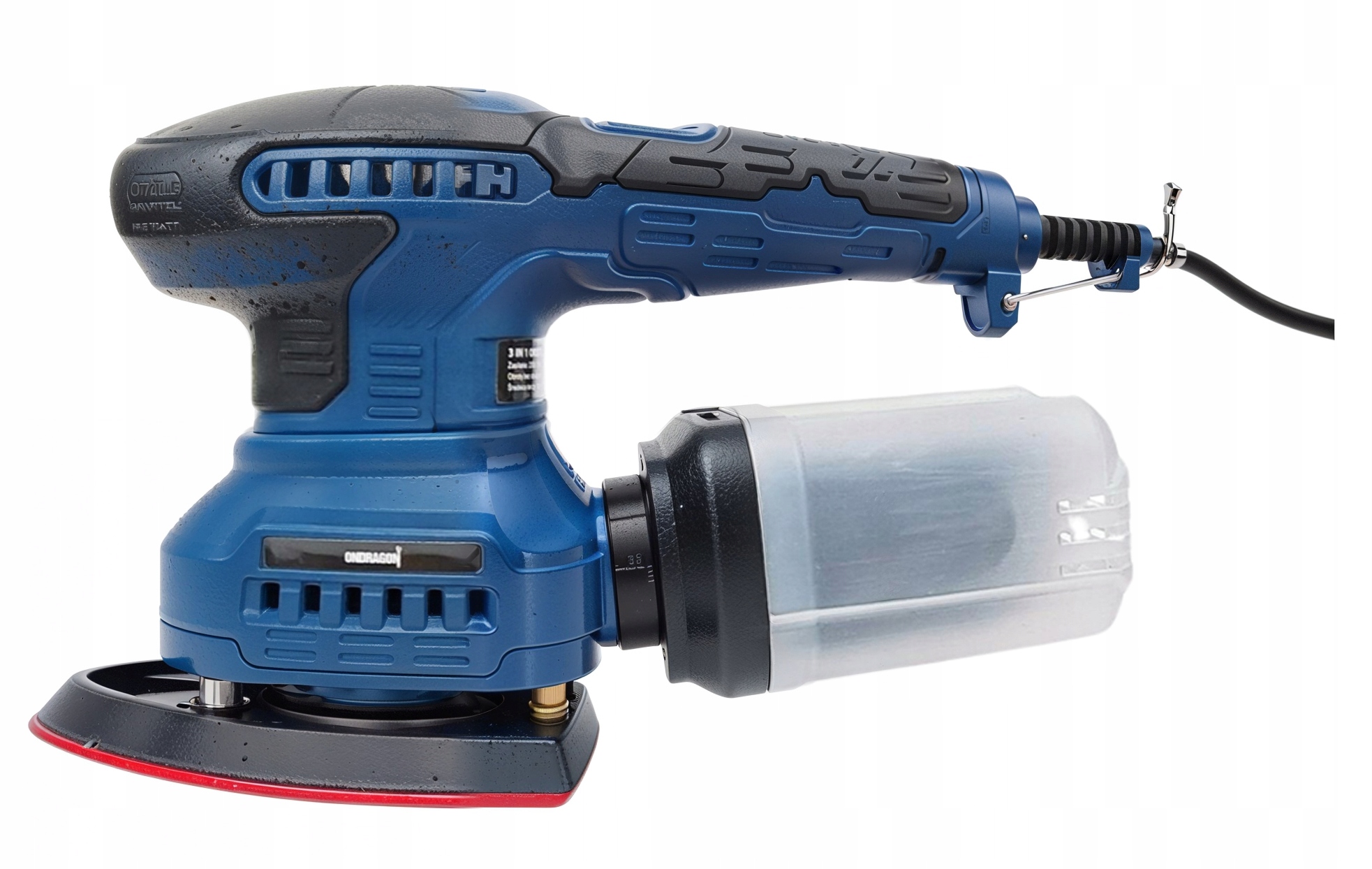 Szlifierka została zaprojektowana z myślą o wszechstronności, umożliwiając użytkownikowi dostosowanie narzędzia do różnych zadań poprzez zastosowanie trzech wymiennych padów szlifierskich: