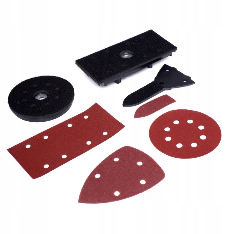 Wymiana papieru ściernego odbywa się bez narzędziowo, tarcze są mocowane na rzep. W zestawie znajduje się również worek na pył, dzięki czemu praca jest czysta.