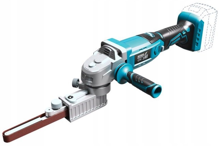 Sprawdzi się zwłaszcza podczas wykańczania powierzchni trudnodostępnych, których nie możemy oszlifować standardową szlifierką taśmową lub szlifierką mimośrodową. Doskonale sprawdza się podczas szlifowania nieregularnych kształtów, krawędzi, zagłębień czy wypukłości. Poprzez wykorzystanie pasów ściernych bezkońcowych o różnej gradacji można uzyskać wyjątkowo dobrze obrobioną powierzchnię. Szerokość taśmy to 14mm, a długość 454mm. Prędkość przesuwu taśmy można regulować w zakresie 4,6-9,7m/s, a wydajny silnik zapewnia stałą prędkość przesuwu taśmy niezależnie od siły nacisku. Urządzenie posiada dodatkową rękojeść z system antywibracyjnym. Powierzchnie chwytu zostały ogumowane, zapewnia to doskonały komfort pracy.