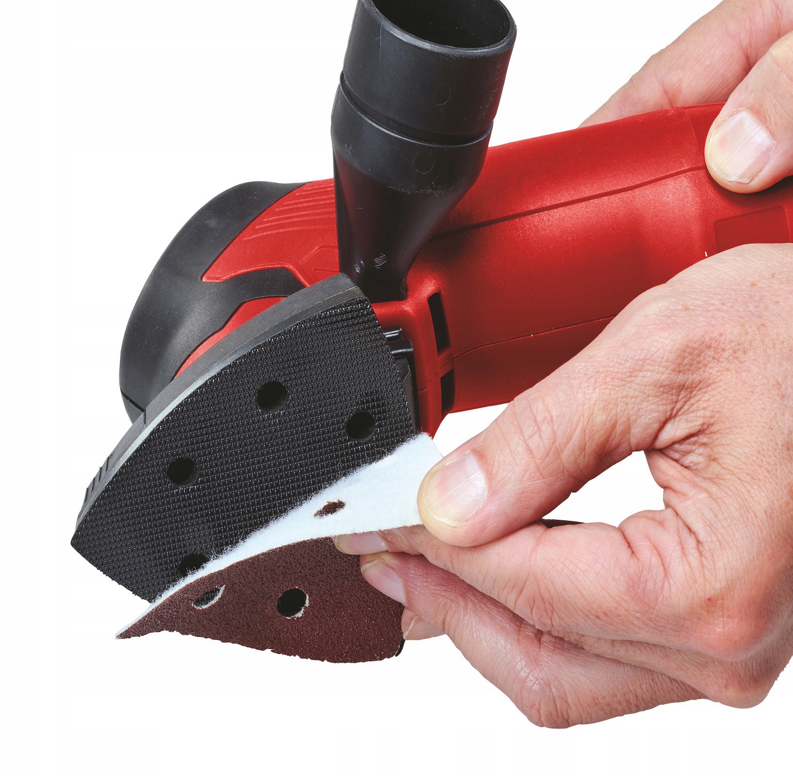 o mocy 200 W to poręczne, kompaktowe narzędzie do szlifowania drewna, plastiku i metalu. Dzięki długiemu czasowi pracy szlifierka delta zapewnia dobrą wydajność pracy dla majsterkowiczów. Kształt talerza szlifierskiego jest idealny do łatwego szlifowania skośnych, trudno dostępnych miejsc. Talerz szlifierski delta można obracać w 3 pozycjach. Każdy z trzech boków talerza szlifierskiego ma 93 mm długości. Elektroniczna regulacja prędkości umożliwia precyzyjne dostosowanie mocy do wykonywanego zadania. Szlifierka pracuje z kołem oscylacyjnym o średnicy 2 mm i prędkościami oscylacji od 12 000 do 22 000 obr/min. Talerz szlifierski jest wyposażony w mocowanie na rzep, które umożliwia wymianę różnych papierów ściernych w ciągu kilku sekund i bezpieczne pozostawienie ich na miejscu podczas szlifowania. Ergonomiczna konstrukcja i miękki uchwyt sprawiają, że szlifierka delta wygodnie i pewnie leży w dłoni. Aby zapewnić czystą pracę przy niskim poziomie zapylenia, szlifierka delta posiada adapter (d = 36mm) do podłączenia odkurzacza Einhell do pracy na mokro/sucho. W zestawie znajduje się 9 papierów ściernych (2x K60, 2x K120, 2x K240, 3x K400), dzięki czemu można natychmiast rozpocząć pracę. Dzięki klipsowi do mocowania zwiniętego kabla, szlifierka delta jest zawsze schludnie i bezpiecznie schowana.