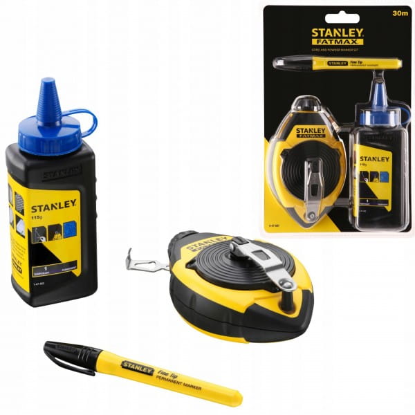 - Zestaw 0-47-681 zawiera: sznur traserski FatMax 47-140, kredę traserską oraz poziomnicę sznurkową 42-287