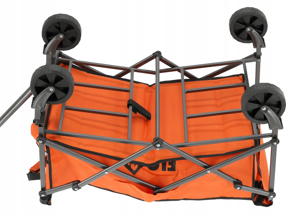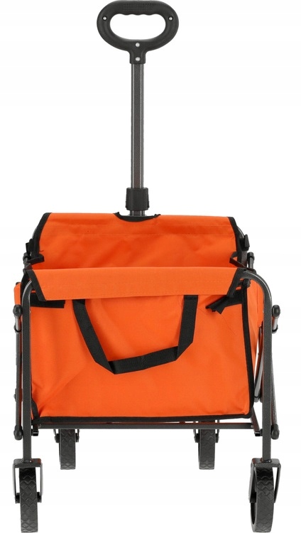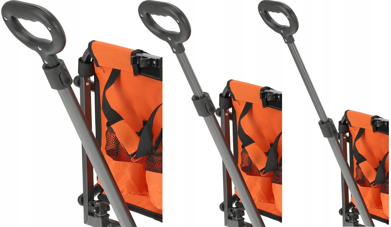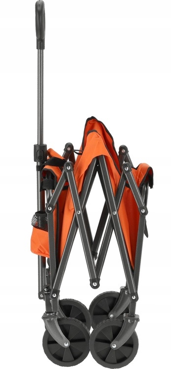 Składana konstrukcja ułatwia przechowywanie i transport wózka, zajmując niewiele miejsca. Teleskopowy uchwyt poprawia komfort użytkowania, dzięki możliwości dostosowania długości do wymagań każdego użytkownika.