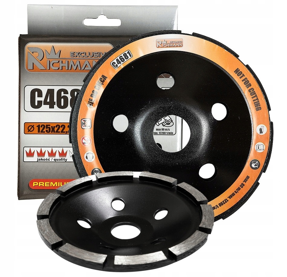 • Tarcza garnkowa segmentowa przeznaczona do szlifowania materiałów takich jak: beton, granit, ceramika.