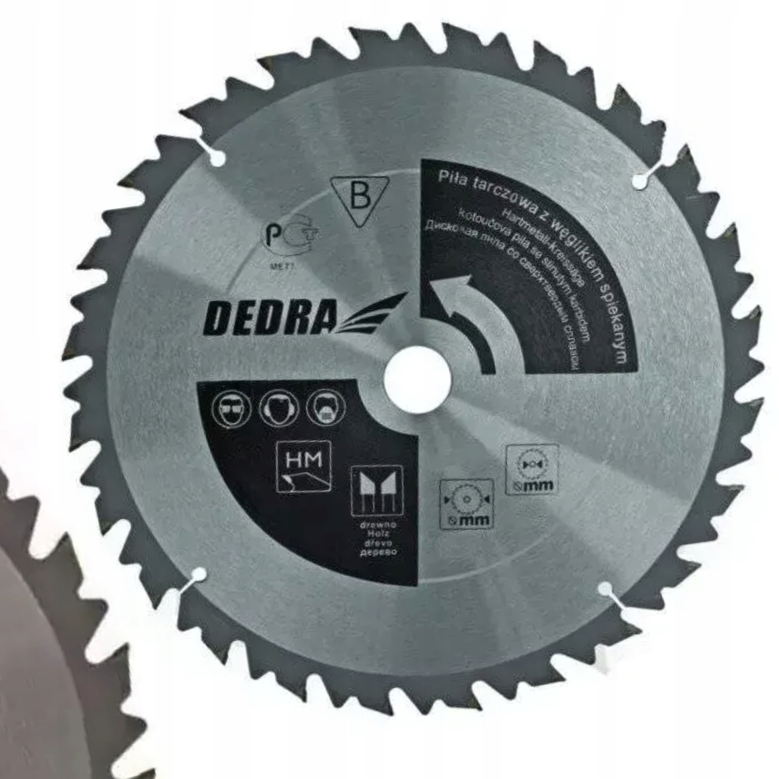 Piła tarczowa do cięcia wszystkich typów drewna. Piła przeznaczona jest do pracy z pilarkami stołowymi DED7726, DED7728 oraz DED7729. Charakterystyczny kształt zębów, pozwala na bezpieczne cięcie materiału w którym znajduje się stalowa przeszkoda o grubości do 3mm.