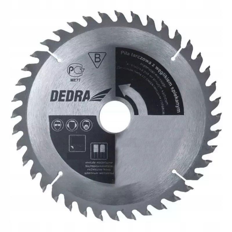 Piła tarczowa do cięcia wszystkich typów drewna. W celu zwiększenia wytrzymałości zębów oraz poprawienia jakości i skuteczności cięcia zęby pokryte zostały węglikiem spiekanym.