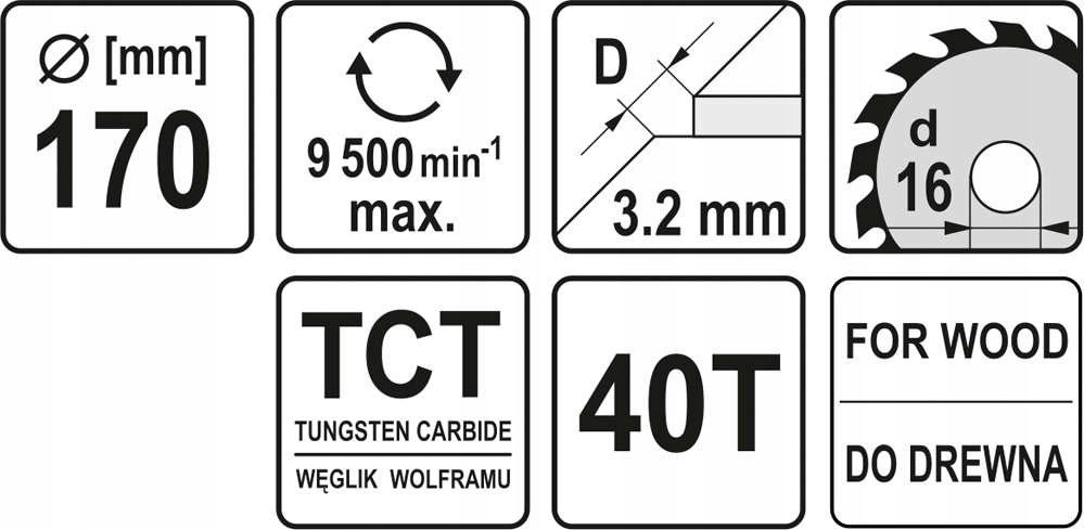 YATO TARCZA WIDIOWA DO DREWNA DREWNOPOCHODNYCH 170x16mm 40 ZĘBÓW YT-60583