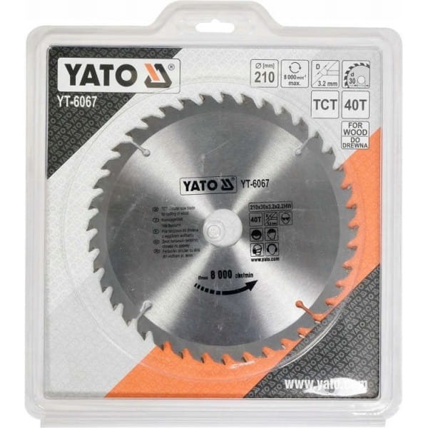 YATO TARCZA PIŁA WIDIOWA DO CIĘCIA DREWNA 210X40TX30MM 40 ZĘBÓW YT-6067
