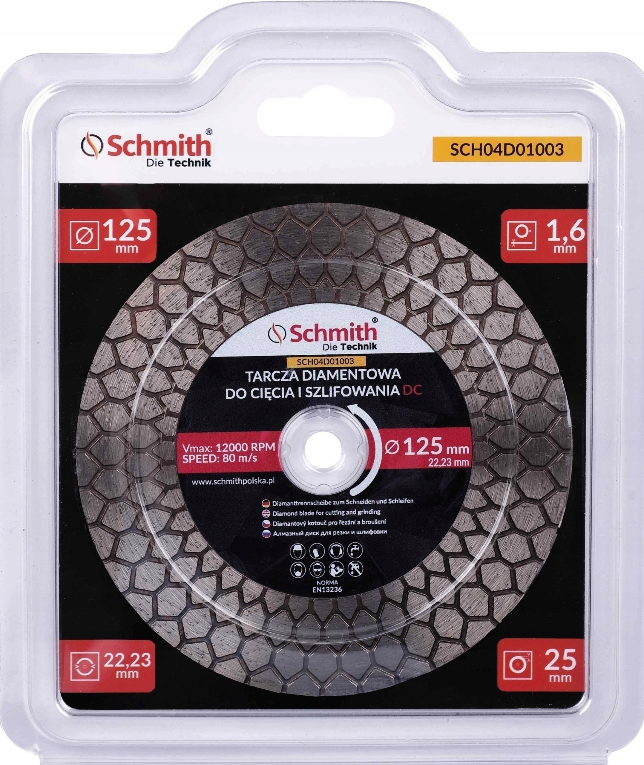 Tarcza diamentowa 125x22,23x1,6 25mm DC to narzędzie wysokiej jakości, idealne do precyzyjnego cięcia i szlifowania różnorodnych twardych materiałów. Tarcza ta doskonale sprawdza się przy obróbce marmuru, granitu, ceramiki, gresu, kamienia naturalnego, klinkieru, porcelany oraz kafli szkliwionych. Dzięki segmentowi diamentowemu o wysokości 25 mm, tarcza zapewnia długotrwałe i efektywne działanie. Równomierna nasypka diamentowa po obu stronach tarczy gwarantuje stabilność i dokładność cięcia, co jest szczególnie ważne przy wymagających projektach. Tarcza umożliwia zarówno cięcie proste, jak i pod kątem 45 stopni, zapewniając najlepsze efekty w obu przypadkach. Jest także niezastąpiona przy szlifowaniu krawędzi, gdzie precyzja jest kluczowa. Przeznaczona do pracy ze szlifierkami kątowymi oraz maszynami do cięcia płytek, tarcza może być używana zarówno na sucho, jak i na mokro, co czyni ją wyjątkowo wszechstronnym narzędziem. Dodatkowo, pierścień redukcyjny pozwala na dostosowanie otworu do 20 mm, co zwiększa jej uniwersalność.