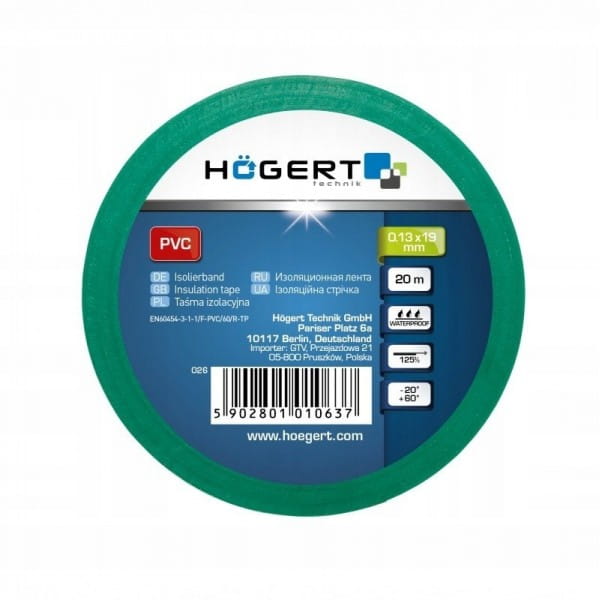 HOGERT HT1P284 TAŚMA IZOLACYJNA PVC ZIELONA