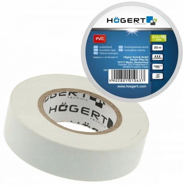 TAŚMA IZOLACYJNA PVC 20M BIAŁA HT1P285 HOGERT