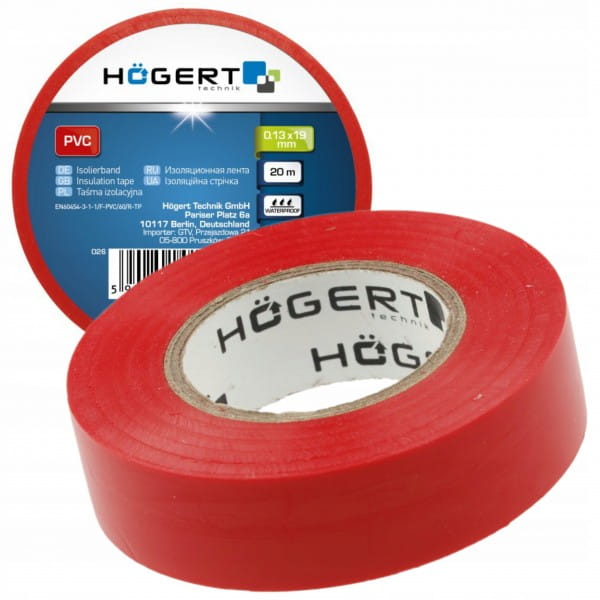 HOGERT TASMA IZOLACYJNA PVC CZERWONA 20M 0,13X19MM WATERPROOF HT1P282