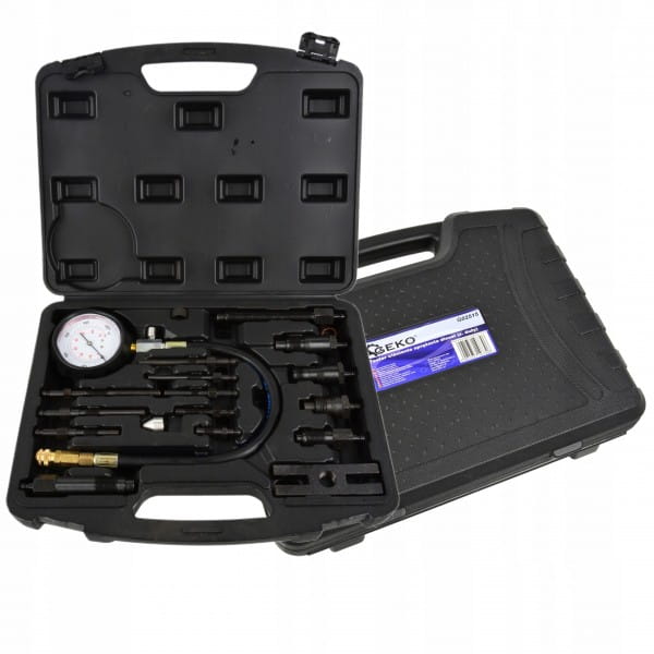 GEKO ZESTAW TESTER MIERNIK CIŚNIENIA SPRĘŻANIA DIESEL +ADAPTERY 17 SZTUK
