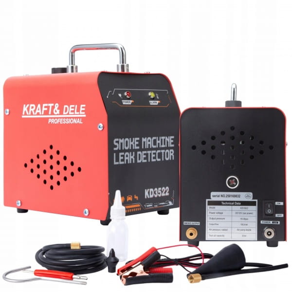 Generator dymu KRAFT&DELE KD3522 to profesjonalne urządzenie diagnostyczne do wykrywania nieszczelności w systemach rurowych pojazdów i instalacjach technicznych. Umożliwia szybkie, bezpieczne i precyzyjne zlokalizowanie wycieków w układach takich jak: system EVAP, układ dolotowy, wydechowy, paliwowy, chłodzenia czy przewody podciśnienia.