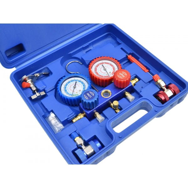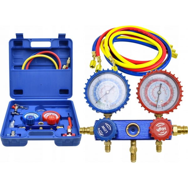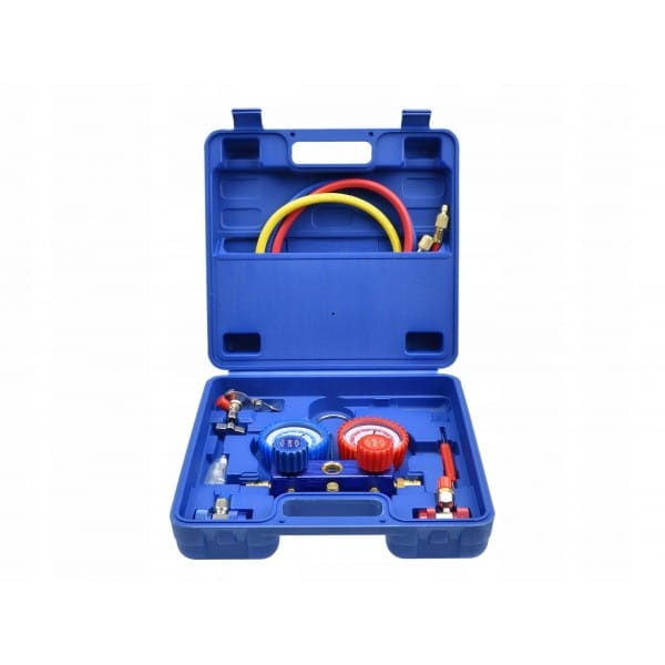 - Zestaw do napełniania i sprawdzania szczelności układów klimatyzacji zarówno do samochodowej jak i stacjonarnej
