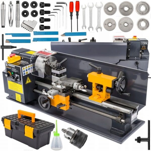 Łoże mini tokarki do metalu zostało wykonane z najwyższej jakości żeliwa, co gwarantuje niezawodność i wytrzymałość. Nylonowe koła zębate zwiększają odporność na zużycie, zapewniając długotrwałą trwałość i precyzję pracy na profesjonalnym poziomie. Mocny silnik o mocy 550 W daje pełną kontrolę nad każdym zadaniem. Dodatkowo pełnowymiarowa osłona przeciwbryzgowa zapewnia maksymalne bezpieczeństwo i ochronę.