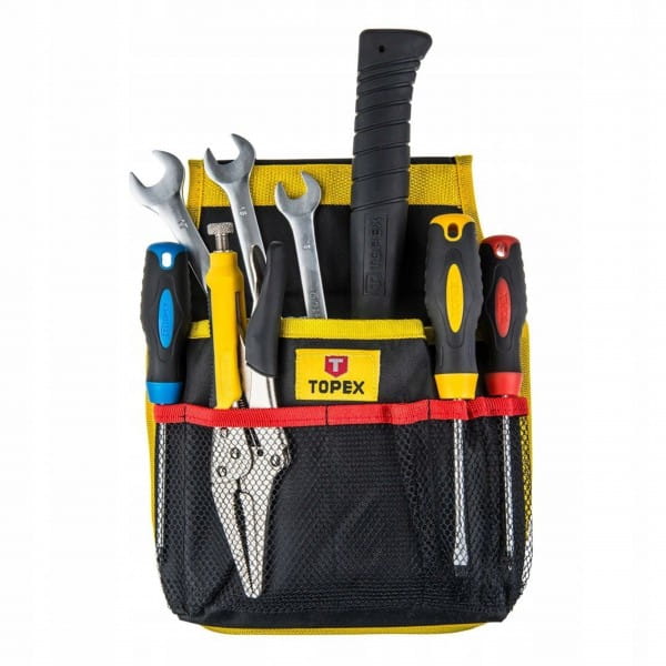 Kieszeń na narzędzia TOPEX (nr ref. 79R430) wykonana z wytrzymałego tworzywa sztucznego. Posiada 11 różnych przegród na narzędzia i akcesoria. Umożliwia wygodne przenoszenie narzędzi. Montowana do paska od spodni. Marka TOPEX skierowana jest do majsterkowiczów.