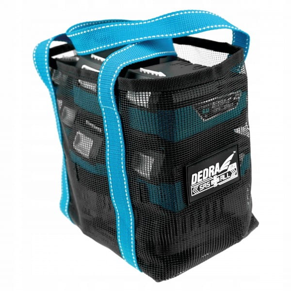 Torba/etui przeznaczona do transportu akumulatorów i ładowarki z systemu SAS+ALL. Wykonana z lekkiej siateczki oraz pasów pełniących funkcję uchwytów. Niewielka waga oraz użyty materiał pozwala na bezproblemowe przechowywanie torby w każdym miejscu. Pokrowiec pozwala transportować przykładowo jedną ładowarkę oraz do sześciu akumulatorów DED7034/DED7035.