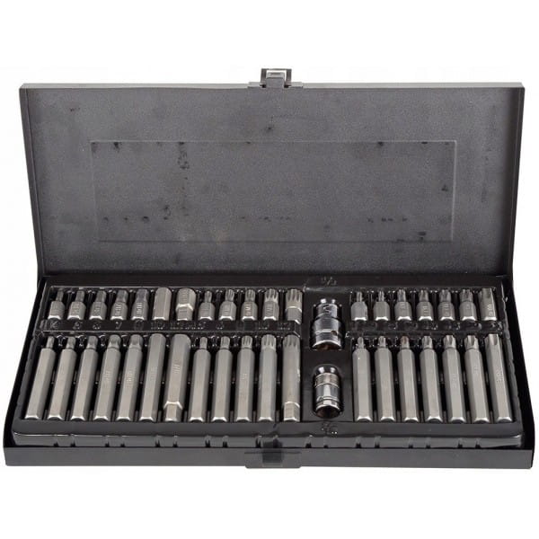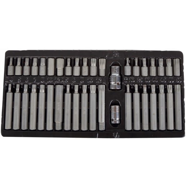 - 10 mm TORX T20, T25, T30, T40, T45, T50, T55 po 1 szt. 30 i 75 mm / XZN M5, M6, M8, M10, M12 po 1 szt. 30 i 75 mm / HEX 4, 5, 6, 7, 8, 10, 12 mm po 1szt. 30 i 75 mm