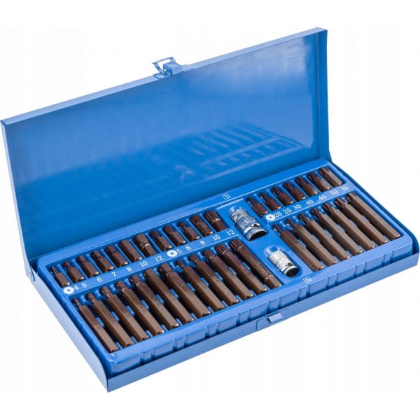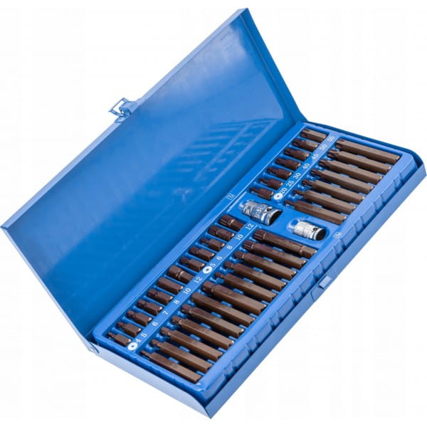 40-elementowy zestaw końcówek wkrętakowych sześciokątnych hex, torx i spline. Wykonane z mocnej i trwałej stali stopowej S2. Stosowane w pracach warsztatowych i remontowo-budowlanych.