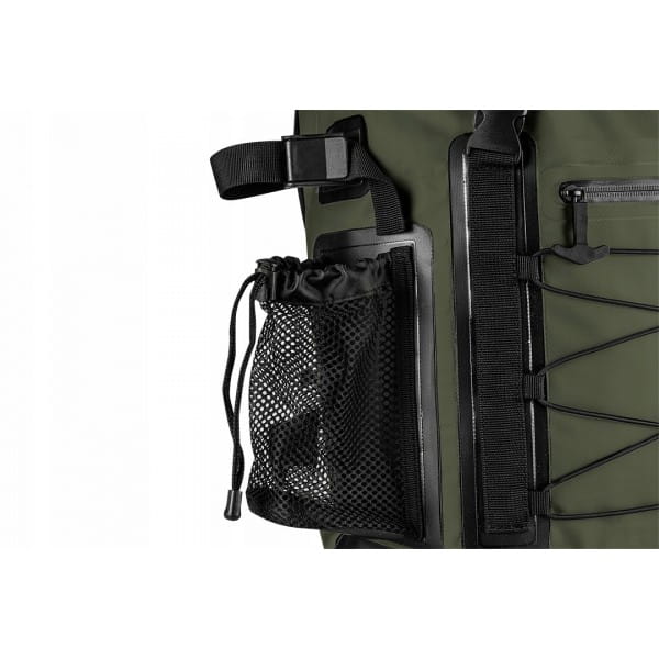 Plecak został wykonany z wodoodpornego materiału, dzięki czemu skutecznie chroni wartościowe przedmioty znajdujące się wewnątrz podczas niesprzyjającej pogody. Gładka i śliska powierzchnia nie wchłania wilgoci ani zabrudzeń, dzięki czemu sprawdzi się doskonale nawet w trakcie intensywnego użytkowania, a także gwarantuje łatwe czyszczenie. Produkt sprawdzi się idealnie podczas intensywnego użytkowania na różnych wyjazdach survivalowych. Regulowane pasy oraz zastosowanie pasów piersiowego i biodrowego zapewnią dobre umocowanie. Poduszki na plecach dodadzą komfortu w trakcie długich tras a liczne kieszenie zapewnia łatwe przechowywanie i sortowanie przydatnych rzeczy.