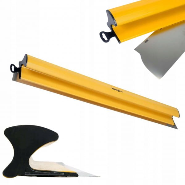 Szpachla tynkarska do precyzyjnego nakładania gładzi metodą suchą i mokrą na powierzchnie ścian i sufitów. Konstrukcja uchwytu pozwala na stosowanie wymiennych ostrzy.