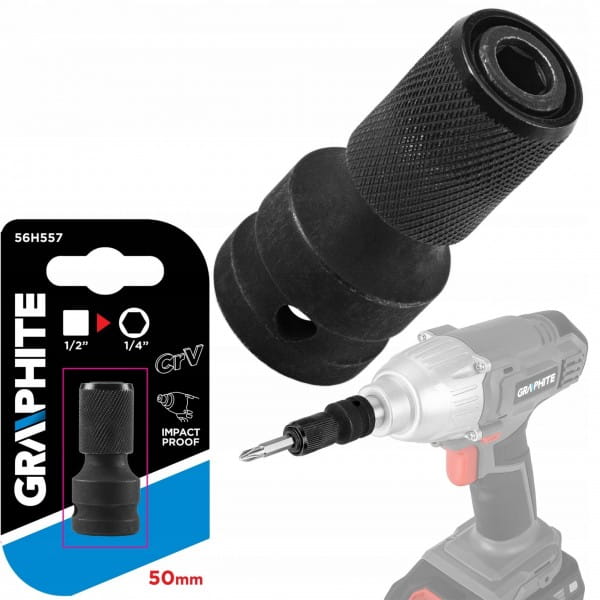 GRAPHITE ADAPTER UDAROWY Z 1/2" KWADRAT NA 1/4" HEX DŁUGOŚĆ 50 MM 56H557