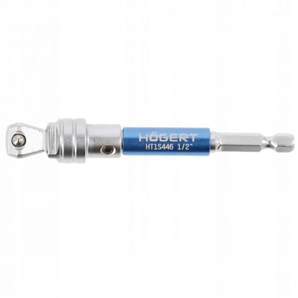 Uchwyt do nasadek 1/2” z mocowaniem 1/4” przeznaczonym do wiertarko-wkrętarek sieciowych i akumulatorowych. Kulisty kształt końcówki umożliwia pracę pod kątem znacznie ułatwiając pracę w trudno dostępnych miejscach.