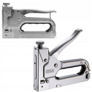 Zszywacz tapicerski przeznaczony do szybkiego łączenia różnych materiałów np. drewna z tkaninami, kartonem, papierem lub skórą. Wykorzystywany w pracach tapicerskich, dekarskich, dekoratorskich, wykończeniach, budowlanych itp. Łączy materiały za pomocą wbijanej z dużą siłą stalowej zszywki.