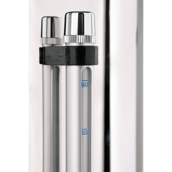 Na zewnątrz pojemnika znajduje się wskaźnik poziomu wody ze skalą wyrażoną w litrach. Po obu stronach są wygodne, nienagrzewające się uchwyty do przenoszenia. Ich konstrukcja stanowi jednocześnie system TWIST-LOCK dzięki czemu możliwe jest szczelne zamknięcie pokrywki. Zastosowany jest kranik o specjalnej konstrukcji, który zapobiega kapaniu.