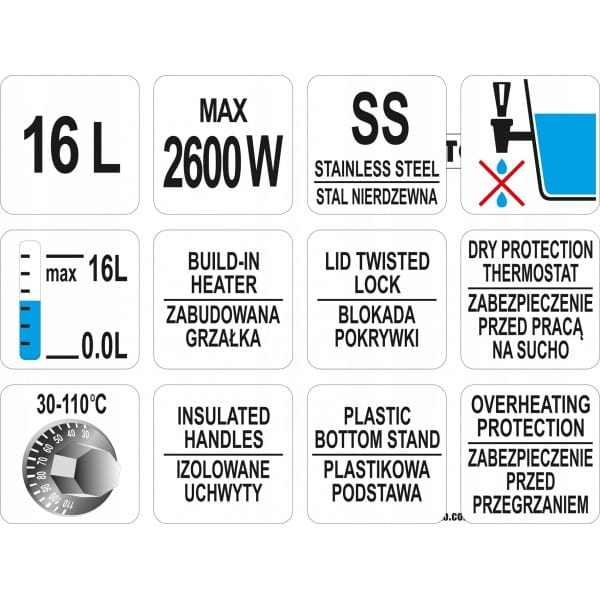 YATO GASTRO PODGRZEWACZ WARNIK DO WODY 16L YATO 2600W 230V YG-04318