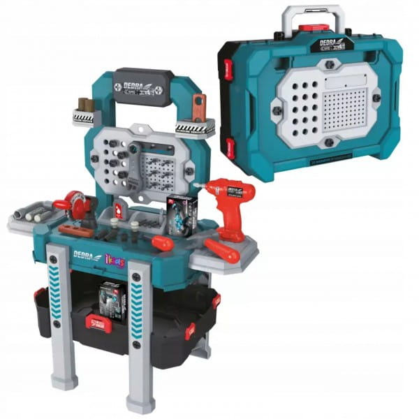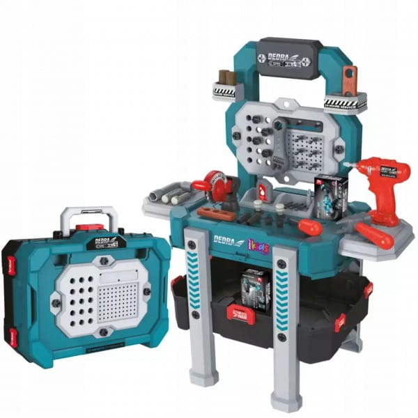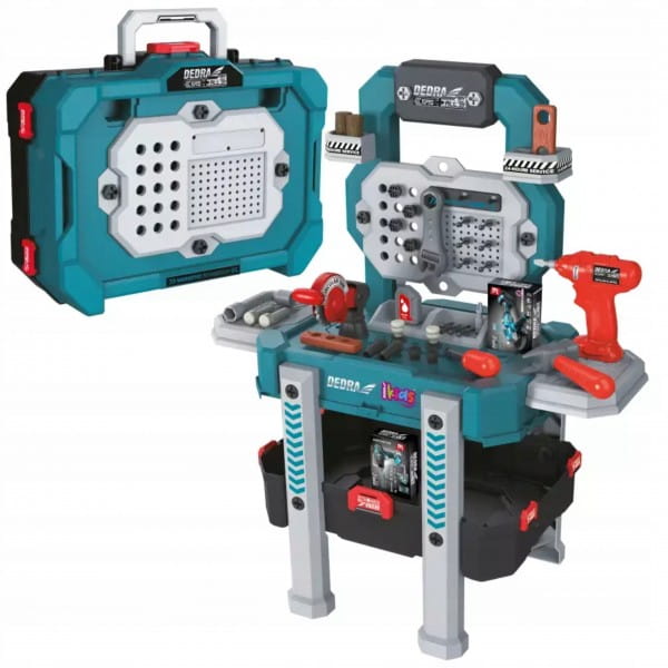 Wyglądem i funkcją przypomina prawdziwy stół warsztatowy wraz z całym niezbędnym oprzyrządowaniem, co pozwala na rozwinięcie się u dziecka pasji, poznanie świata narzędzi oraz nauki zasad ich działania, już od najmłodszych lat. Mnogość elementów sprawia, że zabawa w małego majsterkowicza może stać się niezwykle kreatywna i na pewno szybko się dziecku nie znudzi.