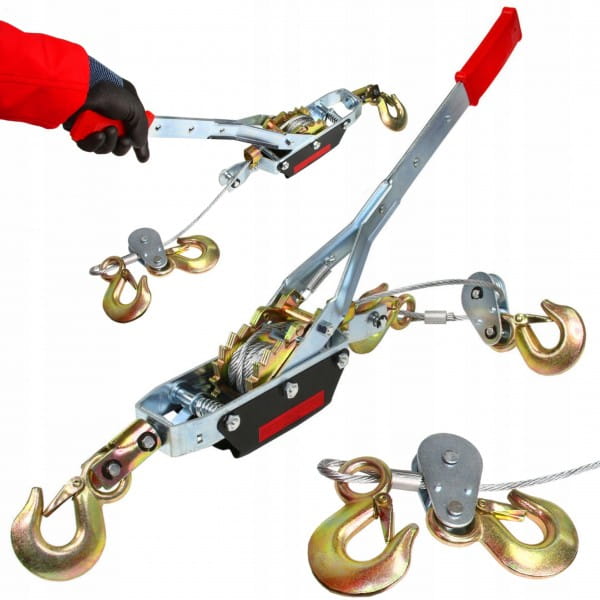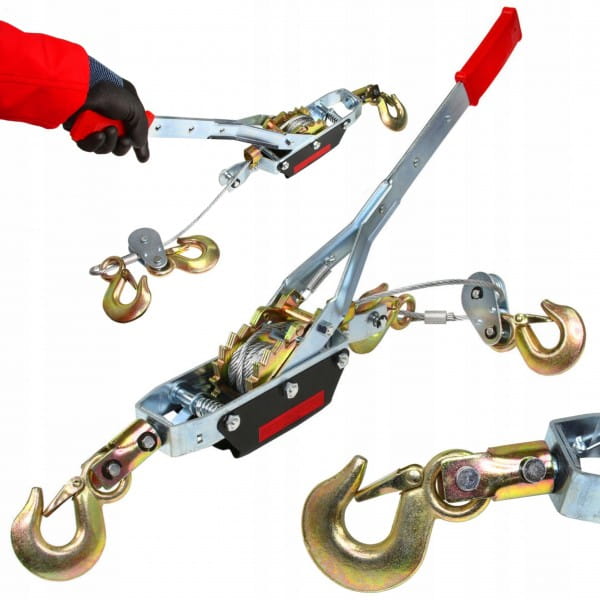 WYCIĄGARKA WCIĄGARKA LINOWA STALOWA RĘCZNA 4T 4000 KG 3 HAKI PRZECIĄGARKA
