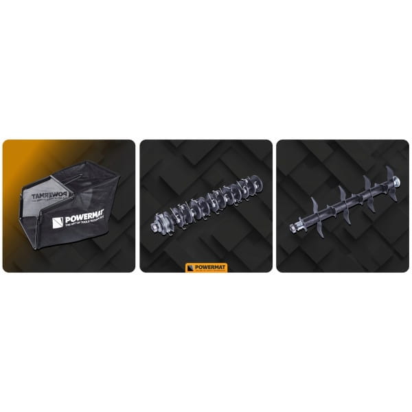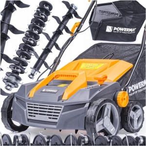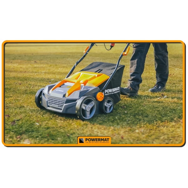 Aerator / Wertykulator elektryczny Powermat PM-AEW-2550M napędzany jest silnikiem elektrycznym o maksymalnej mocy, zapewniającym odpowiednią wydajność pracy.