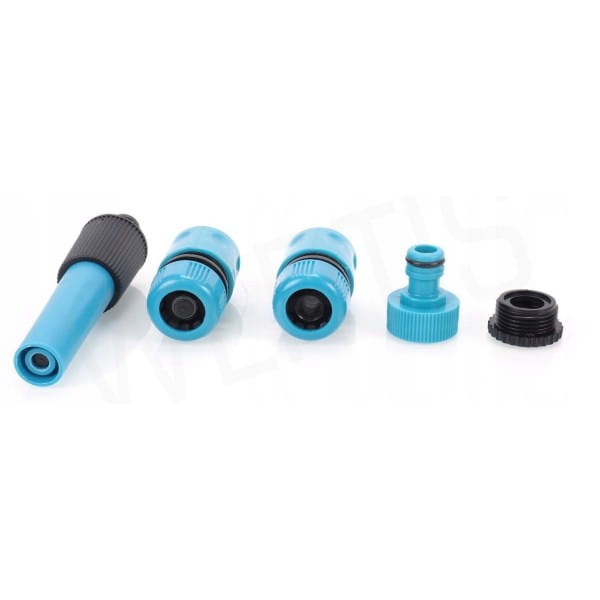 Zestaw zraszający 4el. BLUE LINE przeznaczony do węża o średnicy 1/2”. W skład zestawu wchodzi dysza zraszająca prosta, dwie szybkozłączki 1/2” (w tym jedna ze stopem), oraz przyłącze na kran 3/4” z redukcją na 1/2”.