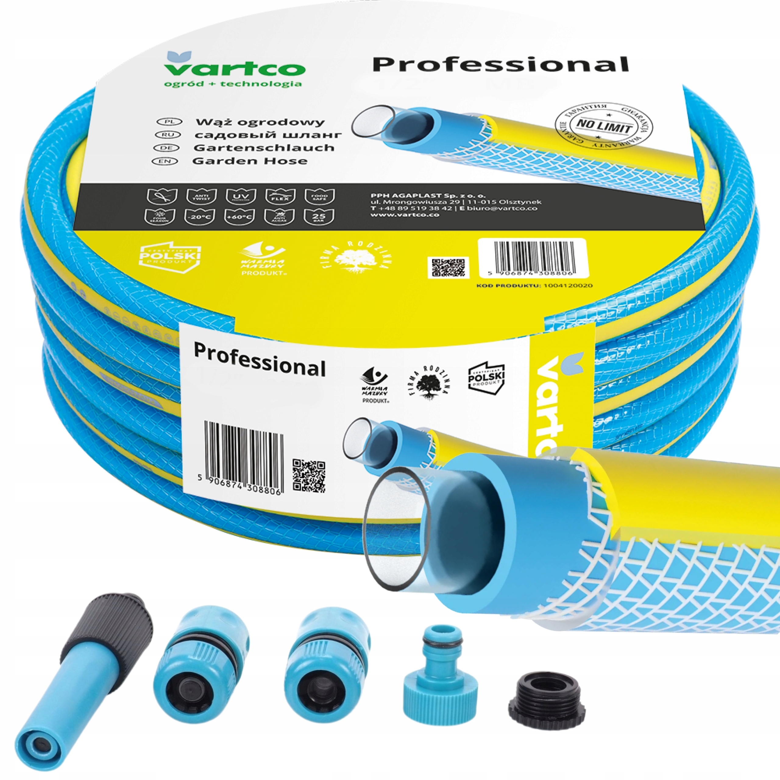 WĄŻ OGRODOWY 4-WARSTWOWY 25BAR 1/2'' 20M + ZESTAW KOŃCÓWEK PRODUKT POLSKI