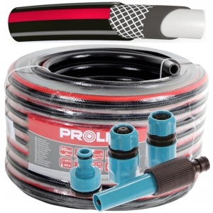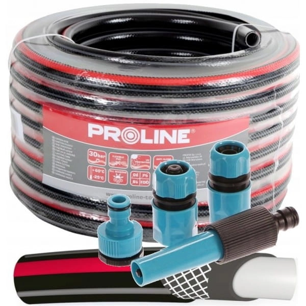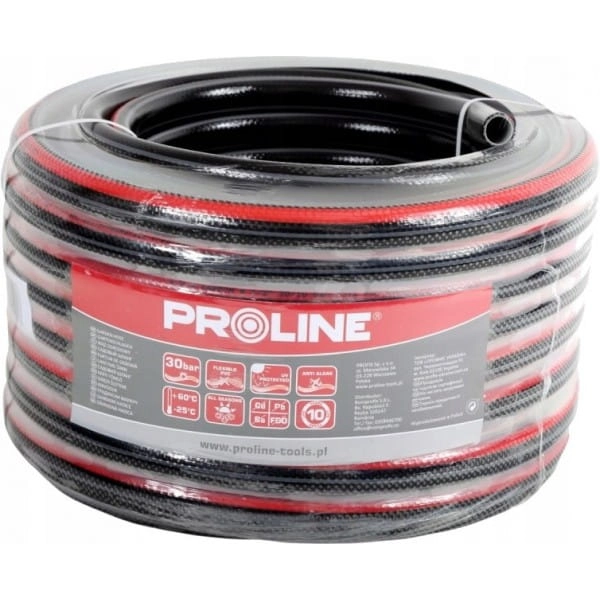 Węże ogrodowe marki Proline z serii CARBON PLUS to produkty czterowarstwowe wykonane z elastycznego PCW na bazie suspensyjnego polichlorku winylu oraz innych komponentów, dodatkowo wzmocnione obwojem tekstylnym. Wyrób przeznaczony jest do tłoczenia wody o ciśnieniu roboczym 10 bar (w 20oC), ciśnienie rozrywające wynosi powyżej 30 bar (w 20oC). Zakres temperatur od -10oC do +60oC. Wyrób objęty ochroną na obszarze Unii Europejskiej. Węże PROLINE są produktami przyjaznymi dla środowiska, ponieważ w składzie chemicznym zastosowanych tworzyw sztucznych nie znajdziemy kadmu, baru, ołowiu i ftalanów. Dodatkowo wysoka jakość zastosowanych materiałów praktycznie eliminuje przepuszczanie światła co skutecznie ogranicza możliwość osadzania się glonów we wnętrzu węża. Produkt nadaje się też do kontaktu z wodą pitną. Zastosowane materiały są także odporne na promieniowanie UV.