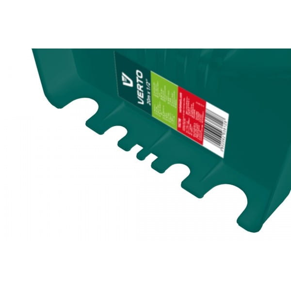 Wieszak ścienny na wąż ogrodowy 15G798 VERTO to solidny wieszak, umożliwiający wygodne przechowywanie węża ogrodowego w warsztacie, garażu lub pomieszczeniu gospodarczym. Wykonany z solidnego tworzywa sztucznego, posiada otwory pozwalające na wygodny montaż. Po drugiej stronie wieszaka znajdują się odpowiednie wycięcia na zahaczenie gwintów.