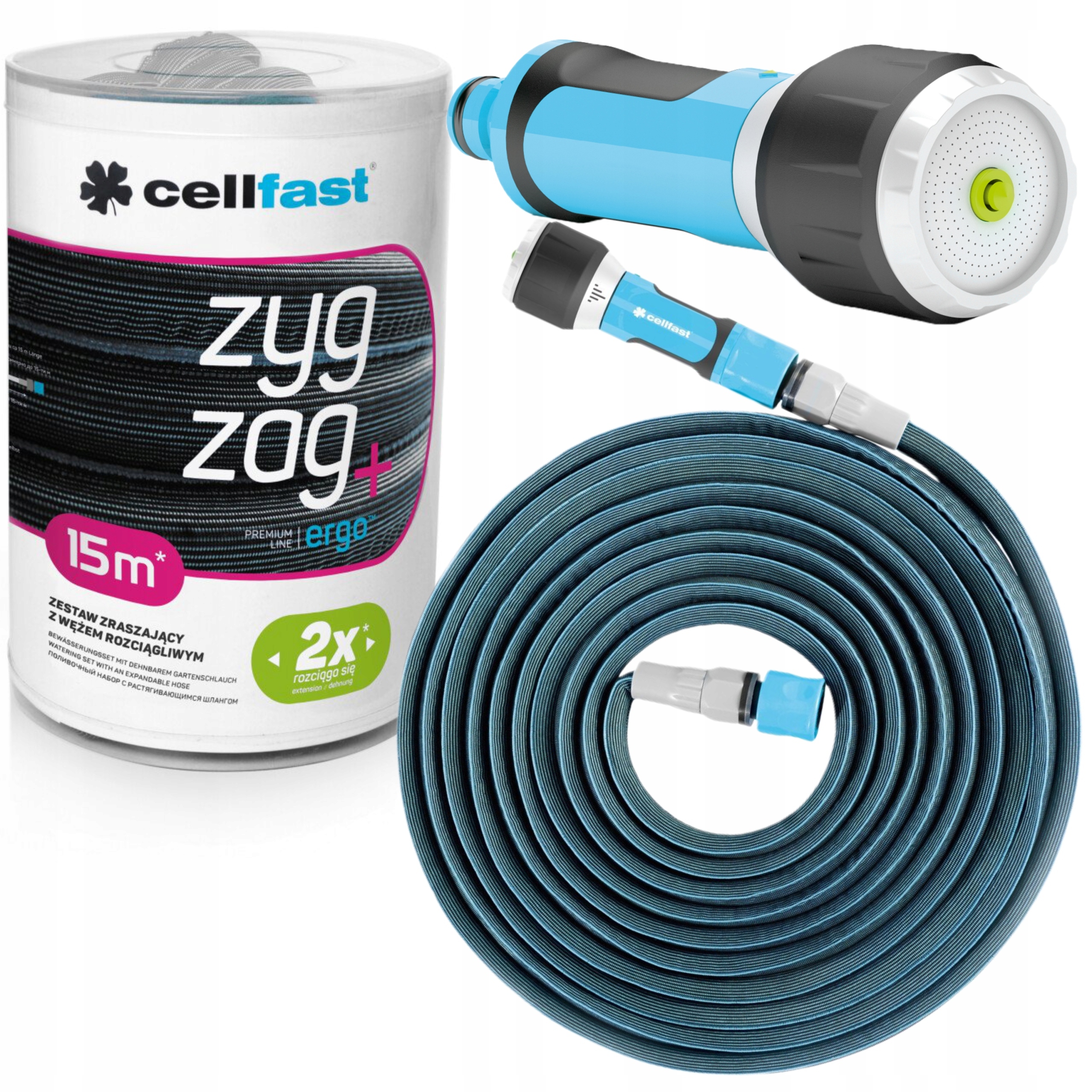 CELLFAST WĄŻ OGRODOWY 15M ROZCIĄGLIWY ZygZag 7,5-15m ZESTAW ZRASZAJĄCY