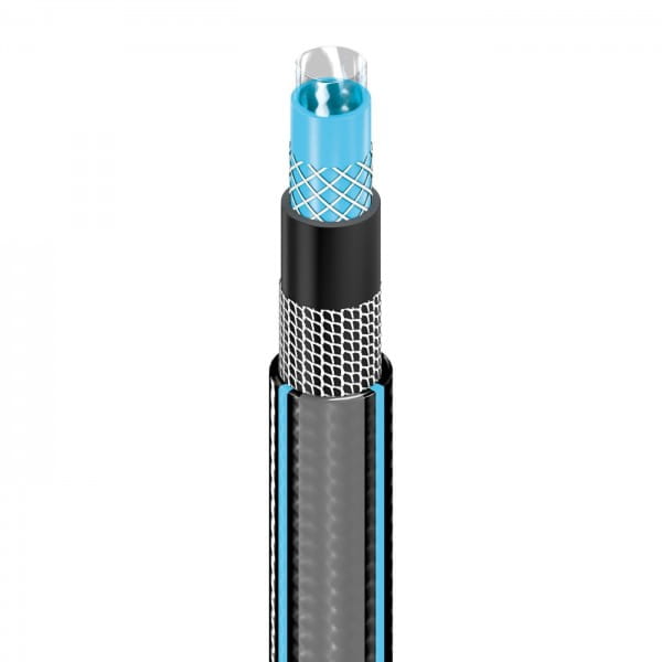 Wąż ogrodowy Hobby posiada 6 warstw, skomponowanych w taki sposób, aby zapewnić mu doskonałą elastyczność oraz trwałość. Ich ilość i grubość dobrano tak, aby chroniły go przed załamywaniem się i działaniem niekorzystnych czynników zewnętrznych.