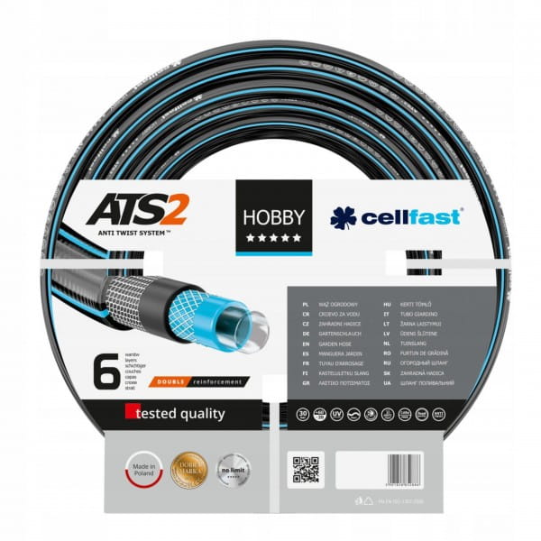 Wąż ogrodowy Hobby wyposażony został w technologię ATS2, która polega na prostym połączeniu oplotu trykotowego z oplotem krzyżowym. W efekcie wąż cechuje się odpornością na skręcanie i załamywanie się, a tym samym na powstawanie supłów blokujących przepływ wody.