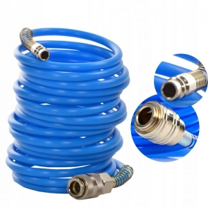 Przeznaczony do urządzeń pneumatycznych, wyposażony w szybkozłącza. Nadaje się do szlifierkek, kluczy udarowych, pistoletów lakierniczych. Dobrze sprawdza się w serwisach samochodowych, lakierniach proszkowych itp. Do użydku profesjonalnego jak i domowego. Cechy produktu: Bardzo wytrzymały, giętki, odporny na załamania i zgniecenia Regulowana rękojeść dodaje komfortu pracy. Możliwość zamocowania rączki z trzech stron umożliwia pracę w trudnych warunkach.