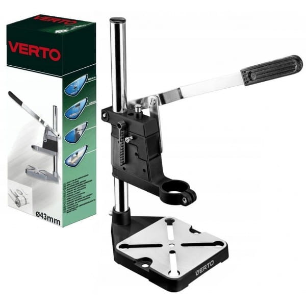 Statyw do wiertarki VERTO (nr ref. 65H105) o skoku 60 mm, pozwalający używać wiertarki ręcznej jako wiertarki kolumnowej.