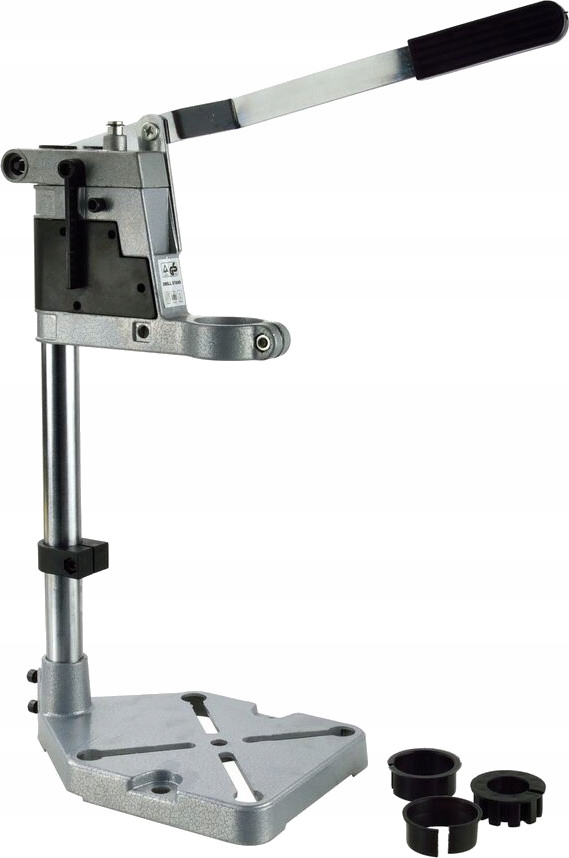 Stojak do wiertarki zmienia wiertarkę w wielofunkcyjne i praktyczne urządzenie. Stojak pozwala na pionową zmianę położenia zamocowanej wiertarki, dzięki czemu możliwa jest stabilna praca zmniejszająca prawdopodobieństwo złamania lub uszkodzenia wiertła. Doskonałe urządzenie do precyzyjnego wiercenia otworów w różnych materiałach. Korpus wykonany jest z aluminium, dzięki czemu całość jest lekka i wytrzymała. Obsługa zamocowanej wiertarki sprowadza się do sterowania dźwignią sprężynującą umożliwiającą samoczynny powrót wiertarki do pozycji początkowej. Przydatny w każdym warsztacie domowym jak i rzemieślniczym.